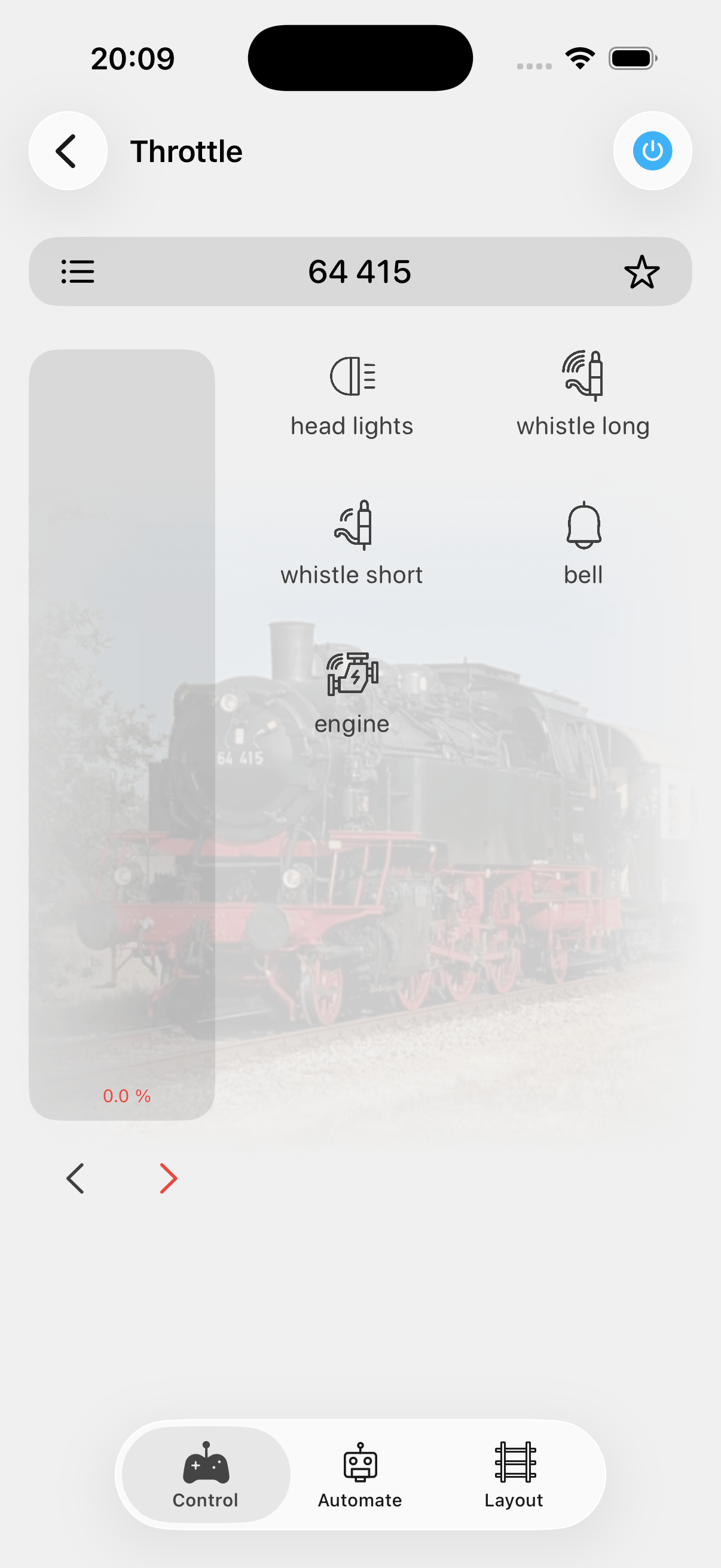 Nach Auswahl einer Lokomotive aus der Fahrzeugliste können Sie diese direkt steuern.