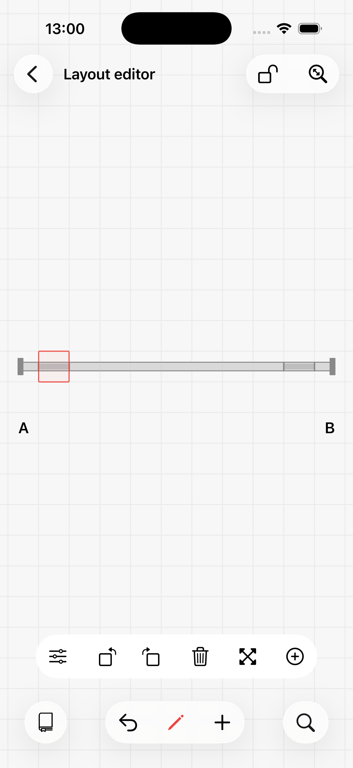 Select the pencil to enter edit mode, tap the track at position A, and open its configuration. Set the feedback to R-Bus module 1, port 1. For B, use module 1, port 2.