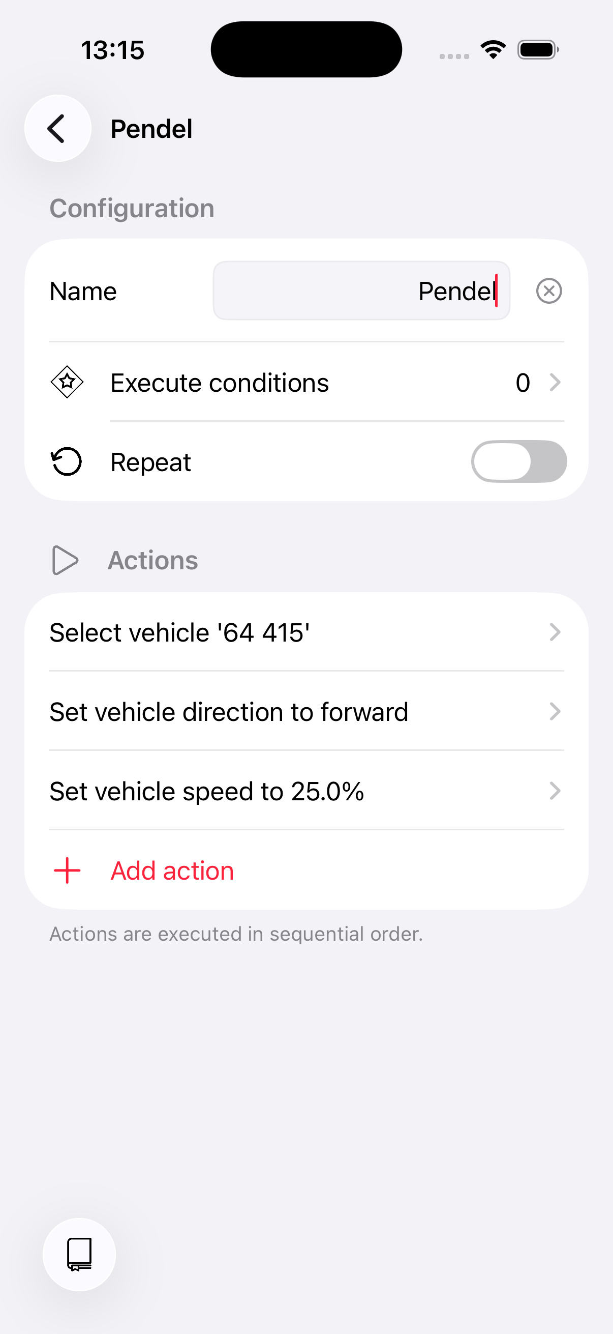 - Use vehicle profiles to define speed and functions centrally, rather than configuring them directly in the script. This makes it easier to adjust driving behaviour later.