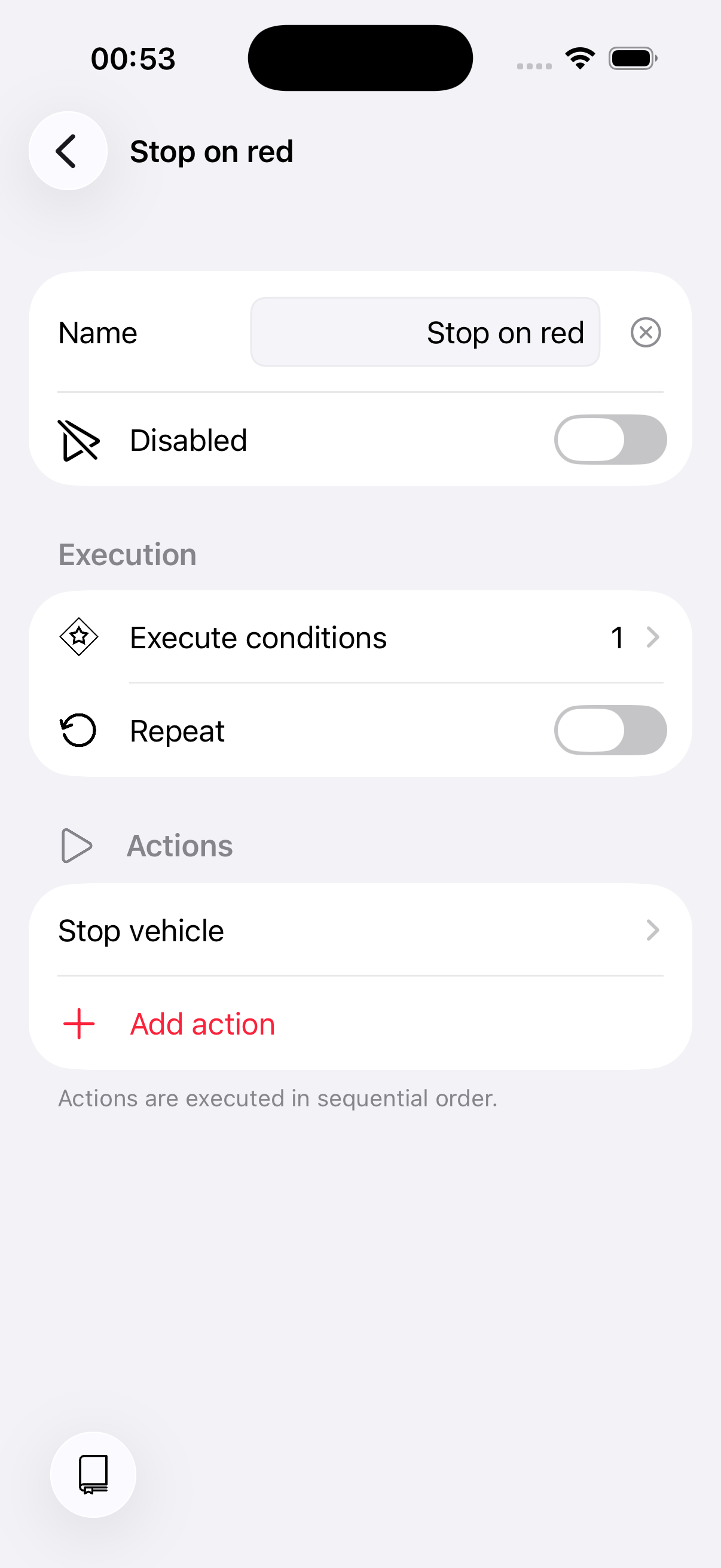 • Add a yellow signal section — Place the execution condition on the section rather than the script. This way you can add a second section for yellow: slow the train down instead of stopping it.