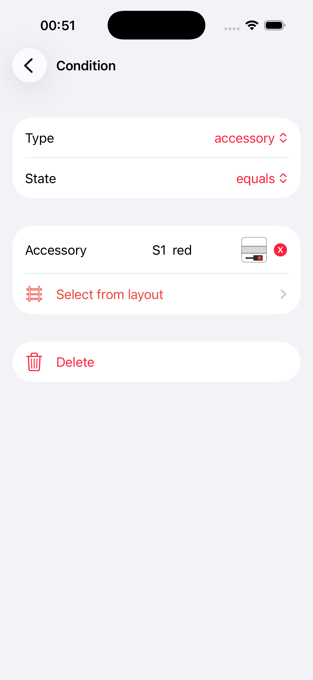 Give the section an execution condition: it should only run when signal "S1" is red. Set the condition type to accessory, select signal "S1", and choose the state "red".