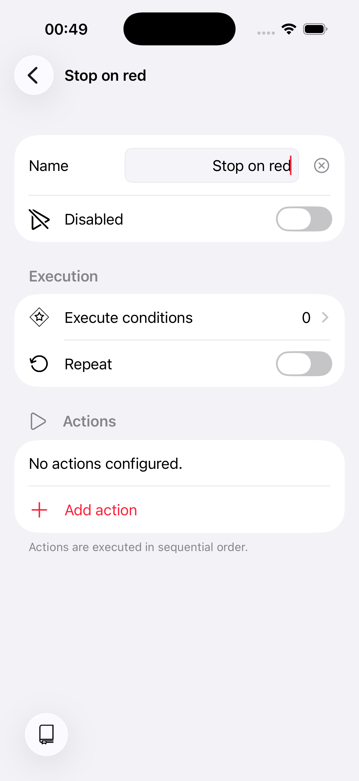 Now set up the script logic. Delete the default section and create a new one called "Stop on red".